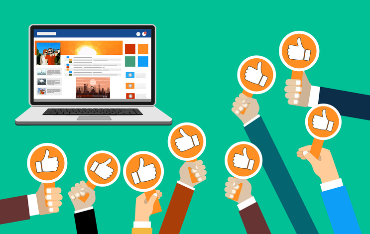 Group of business people with thumbs up icon. Testimonials, feedback, customer review concept. Vector illustration. Flat style design